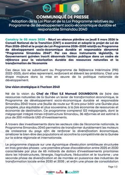 Simandou 2040 : Le CNT valide un méga-investissement de plus de 200 milliards USD (communiqué)