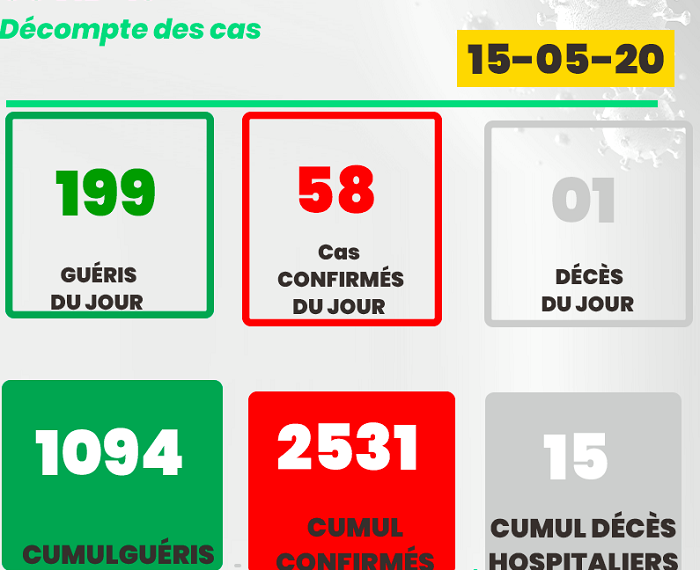A la date du vendredi 15 mai l’ANSS annoncé 58 nouveaux tests positifs sur un échantillon de 482 personnes.