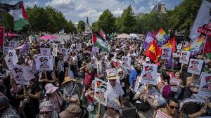 À l’appel de plusieurs syndicats, des milliers de personnes ont manifesté à Paris en soutien à la Palestine, le 14 juin 2025.
