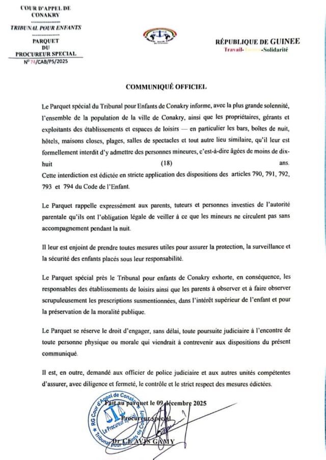 Home A LA UNE Guinée: le Parquet pour Enfants interdit l’accès des lieux de loisirs aux...