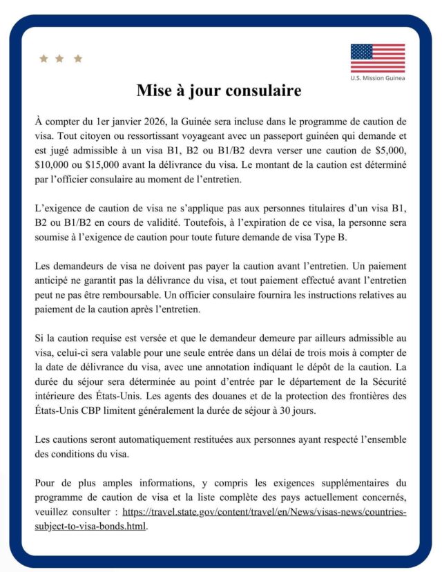 Désormais, il n’est plus possible de voyager plusieurs fois aux États-Unis avec le même visa ! (Ambassade des Usa en Guinée)