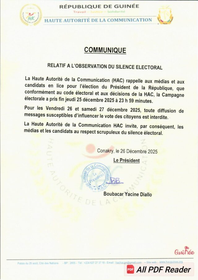Selon la Haute Autorité de la Communication, conformément à la loi électorale, il est désormais interdit aux journalistes et aux médias de diffuser ou commenter toute information relative aux candidats jusqu’à la clôture du scrutin.