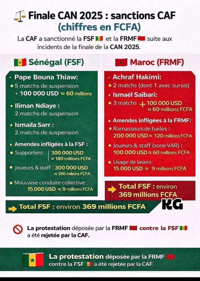 Les sanctions de la CAF sont tombées !! Elles sont justes et tout le monde est concerné que ce soit le Sénégal comme le Maroc. Quand c’est bien, il faut savoir le dire.